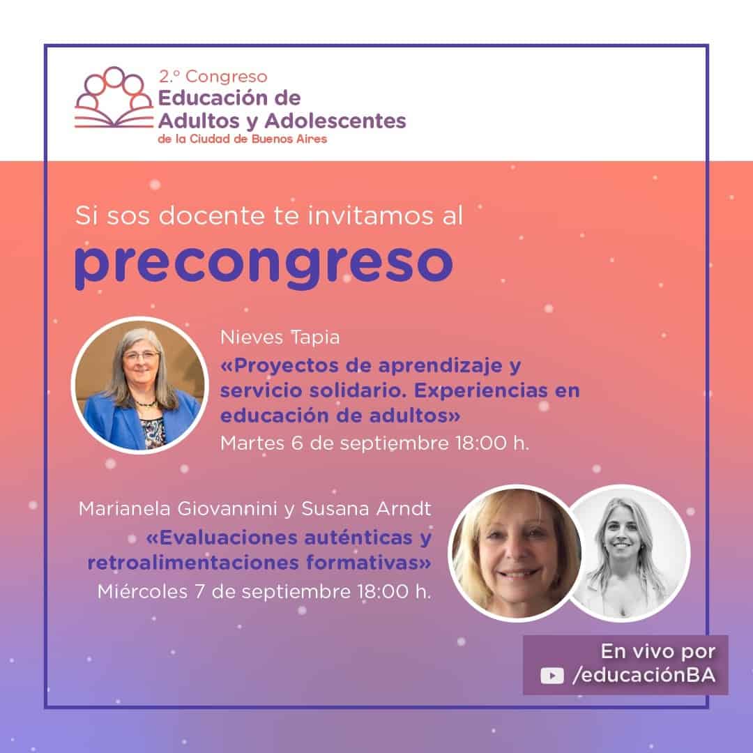 Los días 6 y 7 de 18 a 20hs. se realizará el Pre-Congreso de educación de Jóvenes y Adultos a través de dos actividades virtuales: