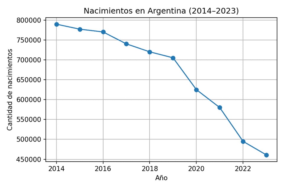 La caída de la natalidad en Argentina dejó de ser una advertencia demográfica para convertirse en un hecho estructural con impacto directo en el sistema educativo. Según los datos más recientes publicados por el INDEC, en 2023 se registraron 460.902 nacimientos, la cifra más baja en más de medio siglo. Este número consolida una tendencia descendente sostenida desde 2014, cuando los nacimientos superaban los 780.000 anuales.