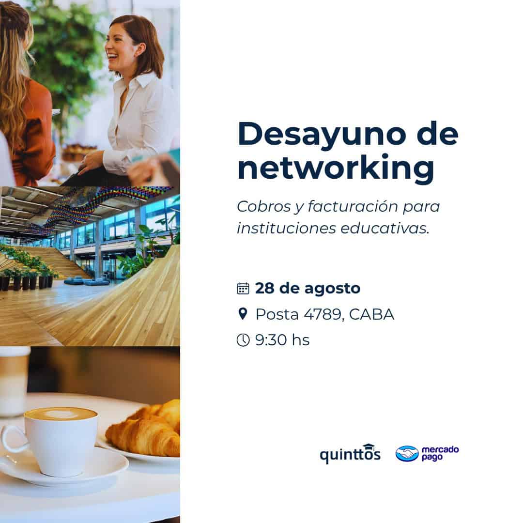 Quinttos, en alianza con Mercado Pago, organizará un exclusivo desayuno de networking con el objetivo de reunir a referentes del sector educativo para debatir sobre los desafíos y las últimas tendencias en la gestión de cobros. El evento, que se celebrará el próximo 28 de agosto a las 9:30 h, tendrá lugar en las oficinas de Mercado Libre, ubicadas en Posta 4789, CABA.
